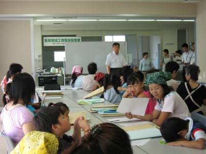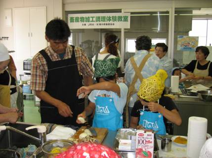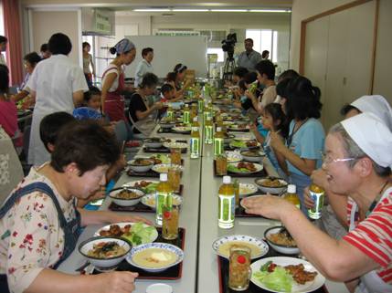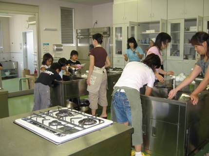 平成18年8月25日に高松市太田上町「JA香川県高松市太田支店女性研修施設ひまわり館」にて、横井料理学院・三野武子院長を講師に迎えて、親子14組31名・サポーター18名の参加者が「鶏肉のマーマレード煮、牛乳を使った冷たいコーンスープ、いりこ飯、シャキシャキりんごの飲む寒天」の調理体験に熱心に取り組みました。