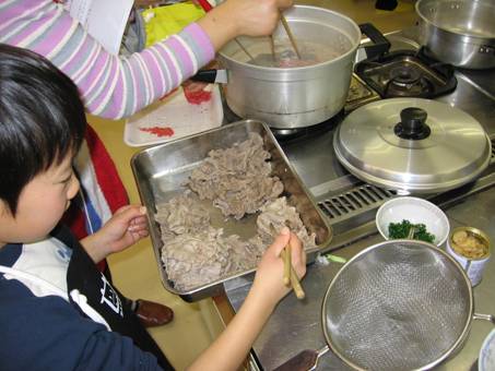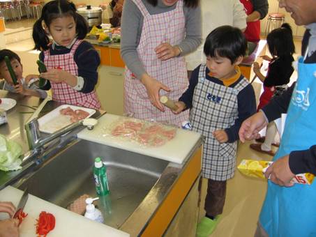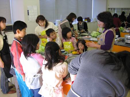 平成19年2月3日に丸亀市土器町東「コープ文化センター丸亀」にて、わかばクッキングスクール・十河絹子先生を講師に迎えて、親子12組29名・サポーター6名の参加者が「讃岐牛のしゃぶしゃぶサラダ、讃岐夢豚のピカタ」の調理体験に熱心に取り組みました。