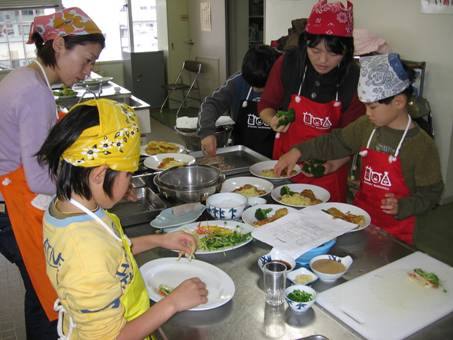平成19年2月17日に高松市松島町「高松市市民文化センター」にて、わかばクッキングスクール・十河絹子先生を講師に迎えて、親子17組36名・サポーター4名の参加者が「讃岐牛のしゃぶしゃぶサラダ、讃岐夢豚のピカタ」の調理体験に熱心に取り組みました。