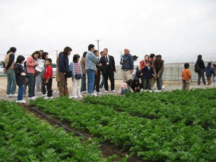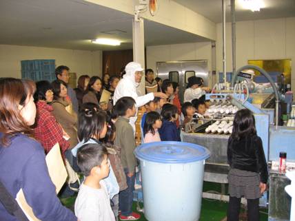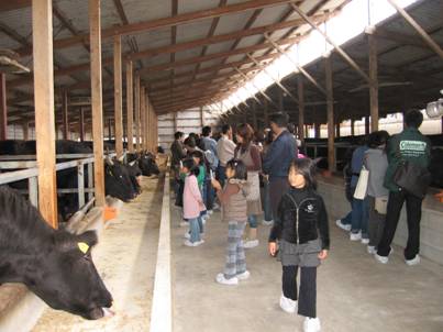 平成18年11月18日に観音寺市八幡町の「合田牧場」「有明堆肥利用組合」「有明出荷組合」、観音寺市池尻町の「西讃コープ食品」で、一般消費者の親子20組40名とサポーター10名の参加者が集まり、和牛のエサやり体験や、循環型農業として堆肥を利用した野菜作り、鶏卵の洗卵選別包装の工程について研修しました。