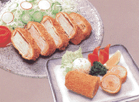 溶き卵、生パン粉を2度付けにして充分に肉の中心部まで火を通します。