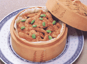 の豚肉を広げるようにのせ、蒸器で約15分蒸します。